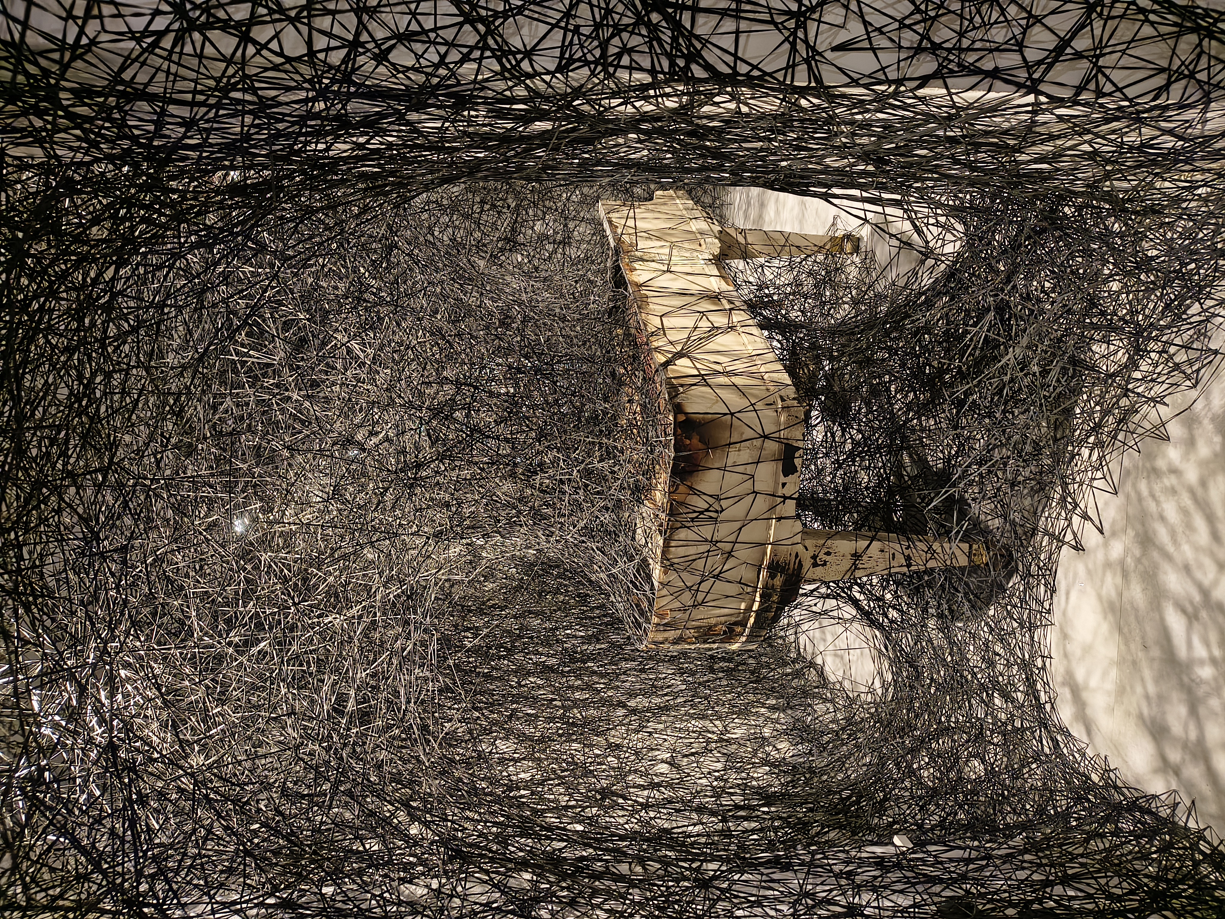 Un percorso all’insegna di grandi pensieri e grandi emozioni, e nella progressiva presa di coscienza della complessità dell’allestimento e della costruzione dell’opera di Chiharu Shiota, che ogni volta viene creata con centinaia di gomitoli di fili (lana e altri materiali) e distrutta, quale testimonianza reale del suo pensiero.