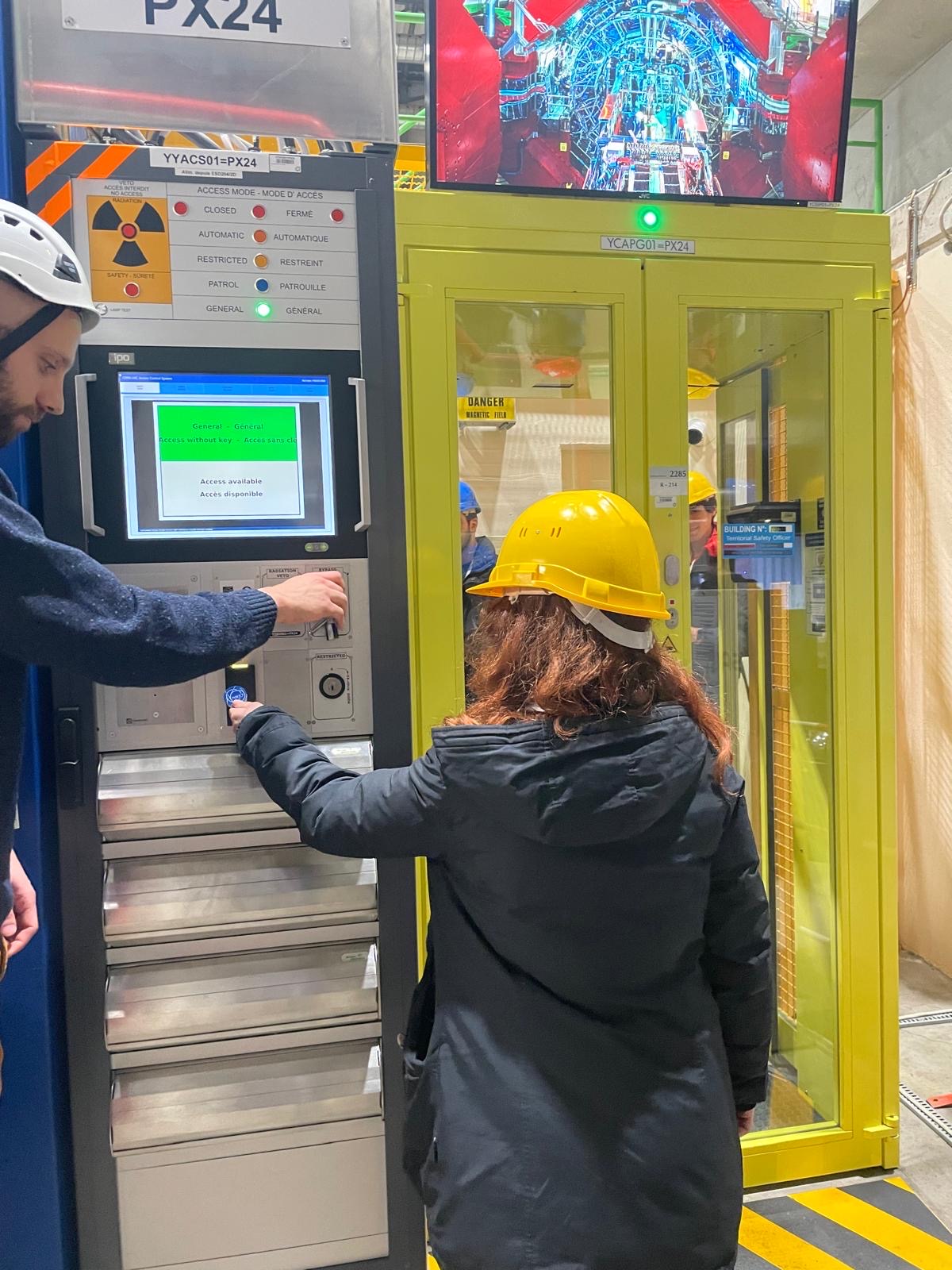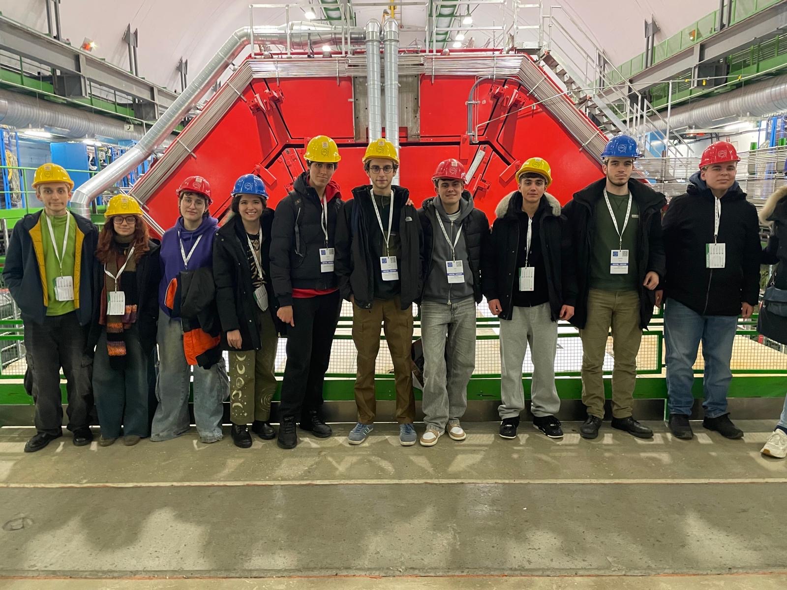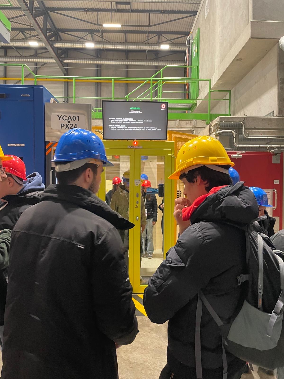 Nel pomeriggio, dopo una breve introduzione e un video illustrativo, la visita è proseguita accedendo ai sotterranei del CERN, dove abbiamo potuto osservare da vicino l’esperimento ALICE (A Large Ion Collider Experiment). Dotati di casco di sicurezza, siamo scesi a circa 80 metri di profondità, trovandoci in un ambiente altamente tecnico e rumoroso, che ci ha permesso di cogliere davvero la scala del lavoro svolto dai ricercatori.